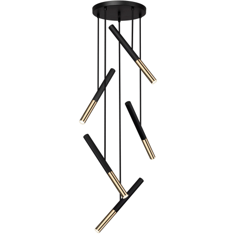 Modern stílusú, energiahatékony LED függesztett lámpa, elegáns arany és fekete fém kivitelben, amely stílusos megvilágítást biztosít bármely enteriőrben...