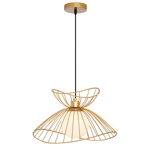 Fém lámpatest opál üveggel, fekete vagy matt arany színben. Függesztett lámpa, E27-es fényforrással kompatibilis, melyet a csomagolás nem tartalmaz...