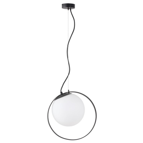 Függesztett lámpa opál üveg búrával és fekete fém szerelvényekkel, különleges lámpatesttel. Egyedi kialakítása modern és elegáns megjelenést biztosít bármely enteriőr számára...