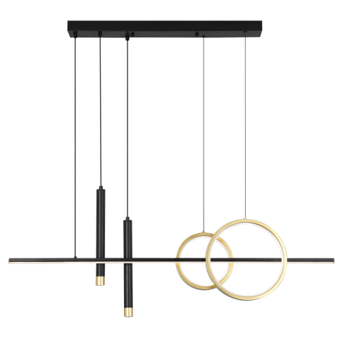 Függesztett LED lámpa matt fekete és arany fém kivitelben, modern formákkal. Kifinomult megjelenésével tökéletes választás bármely stílusos belső térbe...