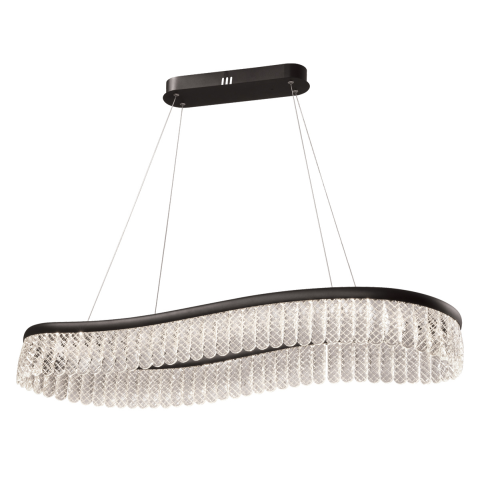 Elegáns stílusú, függesztett LED lámpa fekete fém kivitelben, kristály elemekkel díszítve. Az elegáns dizájn és a csillogó részletek lenyűgöző megjelenést kölcsönöznek bármely enteriőrnek...