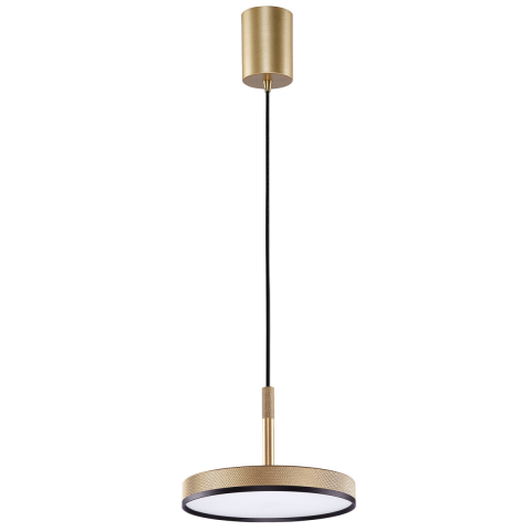 Matt arany színű fém függesztett LED lámpa minimalista stílusban. Egyszerű, letisztult dizájnja modern megjelenést és praktikus megvilágítást biztosít...