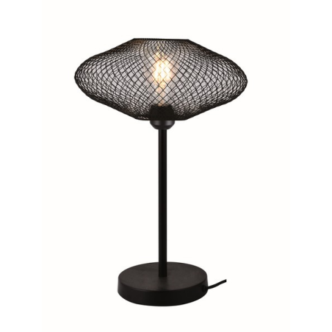 Modern, fekete fém asztali lámpa rácsos lámpabúrával. Különleges dizájnja stílusos megvilágítást biztosít bármely térben. E27-es fényforrással kompatibilis, melyet a csomagolás nem tartalmaz...