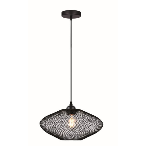 Modern, fekete fém függesztett lámpa rácsos lámpabúrával. Különleges dizájnja stílusos megvilágítást biztosít bármely térben. E27-es fényforrással kompatibilis, melyet a csomagolás nem tartalmaz...