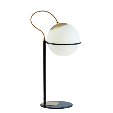Modern és egyben klasszikus stílusú asztali lámpa opál búrával, mely LED izzóval is használható..