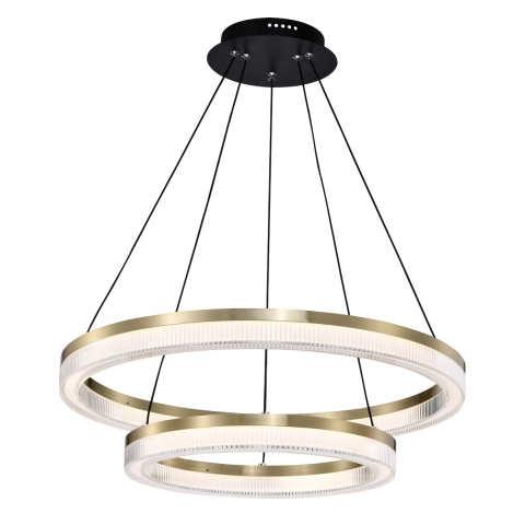 Elegáns, függesztett lámpa áttetsző akril elemekkel, matt fekete és arany fém kivitelben. 3000 K színhőmérsékletű LED technológiával, amely stílusos és meleg fényt biztosít...