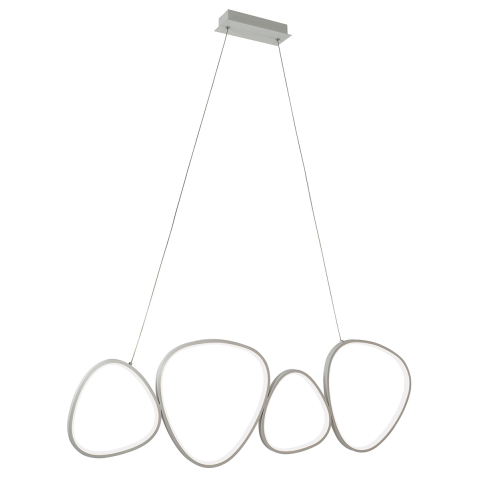 Függesztett LED lámpa ezüst színű fém kivitelben. Elegáns dizájnja modern és kifinomult megvilágítást kínál nappalikba, étkezőkbe vagy hálószobákba...