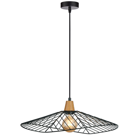 Függesztett lámpa fekete fém testtel, barna fa hatású részletekkel. Modern és stílusos megjelenése bármely térben kifinomult eleganciát és melegséget teremt...