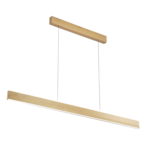 Függesztett LED lámpa szálcsiszolt matt aranyszínű fém kivitelben. 3000 K színhőmérsékletű meleg fehér fényt biztosít, amely elegáns és hangulatos megvilágítást nyújt modern terekhez...