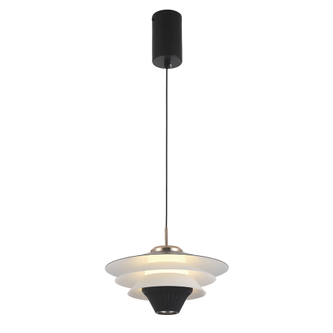 Függesztett LED lámpa fekete és fehér fém kivitelben, aranyszínű részletekkel. Modern és elegáns megjelenése ideális választás stílusos belső terek megvilágításához...