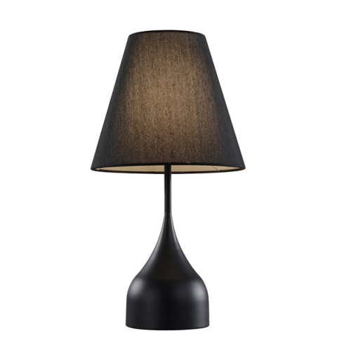 Fekete szövet ernyővel és fekete fém alappal rendelkező asztali lámpa. Egyszerű és modern kialakítása elegáns kiegészítője lehet bármely enteriőrnek. Ideális választás hangulatos és stílusos világításhoz...