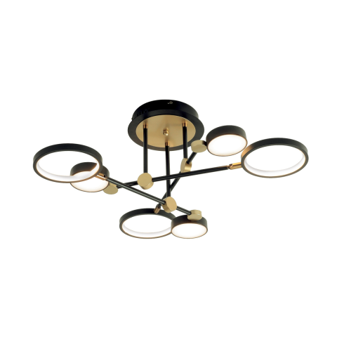 Arany és fekete színű LED mennyezeti lámpa, 3000 Kelvin színhőmérséklettel. Stílusos és modern kialakítása meleg fényt biztosít, kellemes atmoszférát teremtve a térben...