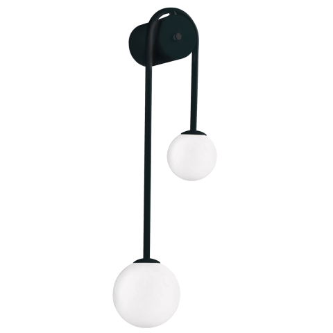 Fekete fémből készült fali lámpa opál matt üveggel. Modern és elegáns megjelenése lágy, szórt fényt biztosít. Ideális választás stílusos és hangulatos világításhoz...