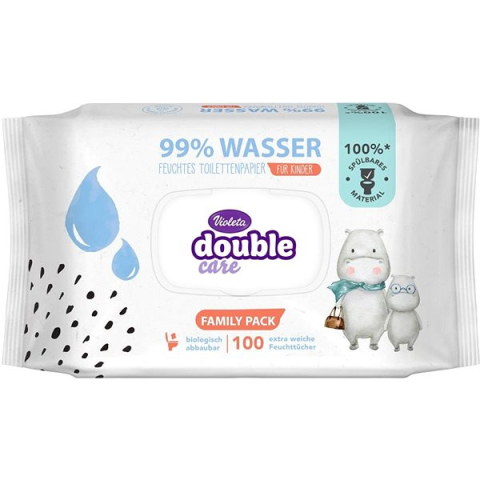 Nedves wc papír - illatosított, környezetbarát, érzékeny bőrre, dermatológiailag tesztelt, alkoholmentes és leöblíthető, műanyag fedéllel záródik, 100 darab a csomagban A nagyszerű VIOLETA Double Care nedves toalettpapír (100db) termék lényeges tulajdonságai A kiváló VIOLETA nedves wc papír a szokványos wc papírnál gyengédebben tisztítja meg a bőrt A finom illatosítá