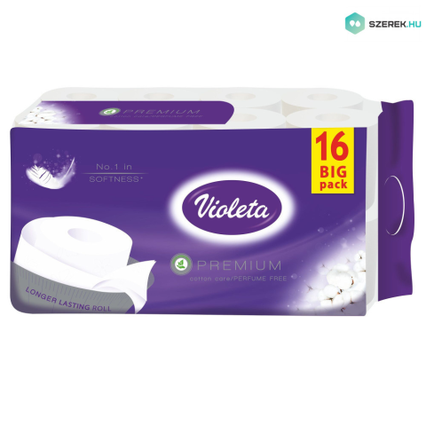A Violeta Premium 16 darabos toalettpapír illatmentes, fehér színű és praktikus kiszerelésű termék. Három rétegének köszönhetően a bőrfelülettel érintkezve puha érzést kölcsönöz. Prégelt technológiával, 100 % cellulózból előállított termék, mely a legpuhá
