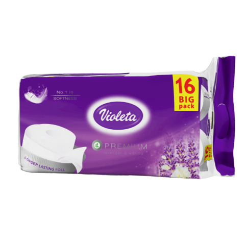 A Violeta prémium toalettpapír, wc papír nem csak kiemelkedően puha, de erős 100% cellulózból készült termék. Egyedülálló illatanyag kombinációval: levendula és vanília. A Violeta papír termékek szinte kizárólag prégeléses technológiával kerülnek előállí