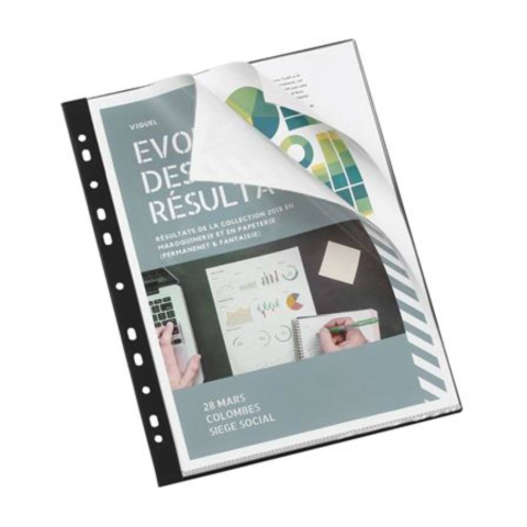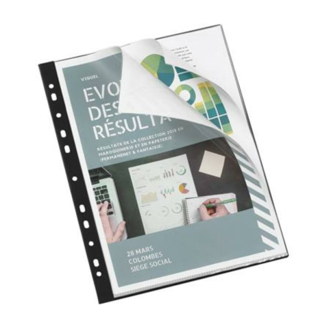 Bemutatómappa, lefűzhető, 20 zsebes, A4, VIQUEL, Essentiel, fekete (IV116305) - 20 zsebes változat - A4 méretű zsebekkel - szórólapok, árlisták, ajánlatok átadására, tárolására - a zsebek tökéletesen megvédik a behelyezett anyagokat - megerősített lefű