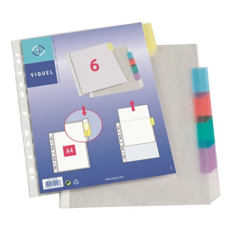 1 kép VIQUEL Genotherm, lefűzhető, jelölőfüles, A4, 90 mikron, víztiszta, 6 részes, VIQUEL
