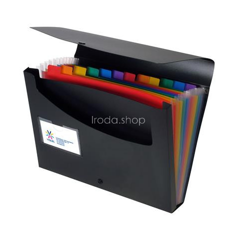 Harmonikamappa, PP, 12 rekeszes, VIQUEL Rainbow Class, fekete - A4 méretű dokumentumok tárolására - rugalmas, tartós, polipropilén alapanyag - regiszteres kivitel, feliratozható címkékkel és gerinccímkével - kívül fekete, belül különböző színű rekeszek