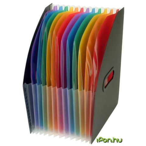 - - A4 méretű dokumentumok tárolására- 20 cm-re kihúzható- rugalmas, tartós, pilopropilén alapanyag- kívül fekete, belül különböző színű rekeszek- 2 megerősített fogantyú- méret: 255x320 mm
