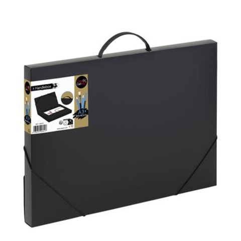 Irattartó mappa fogantyúval Creativ Gallery design -gerincvastagság: 30 mm -méret: 305x425 mm -tájolás: álló -A3 méretű dokumentumokhoz -záródás: feket gumiszalaggal -3 belső fül a biztonságos tárolásért -fekete fogantyú -szín: fekete Gyártó/első EU forgalmazó elérhetősége: VIQUEL SAS 14 Rue de Mantes 92700 Colombes - France lpalix@viquel.fr, ijourdain@viquel.fr www.viquel.fr