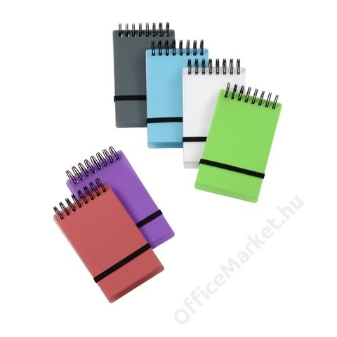 Spirálnotesz, 75x125 mm, vonalas, VIQUEL Propyglass Mini, vegyes színek (IV052083) - méret: 125 x 75 mm - rugalmas, polipropilén alapanyag - gumiszalaggal zárható - 6 féle színben: fukszia, sárga, kék, zöld, füstszínű - vegyes színek, a szín nem válasz