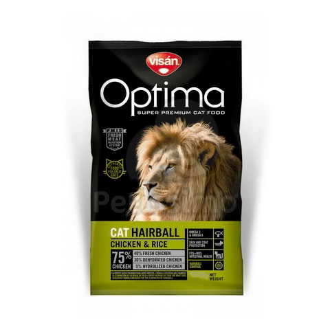Visán Visán Optimanova Cat Hairball Chicken & Rice 2 kg macskaeledel termékleírás