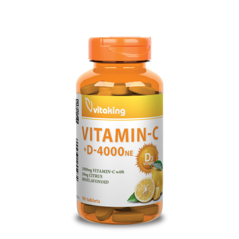 A Vitaking C-vitamin 1000mg + D3-vitamin 4000NE tabletta egy komplex készítmény, amely magas hatóanyag-tartalommal segíti az immunrendszer normál működését. Minden tabletta 1000mg C-vitamint, 4000 NE D3-vitamint és 50mg citrus bioflavonoidot tartalmaz, am