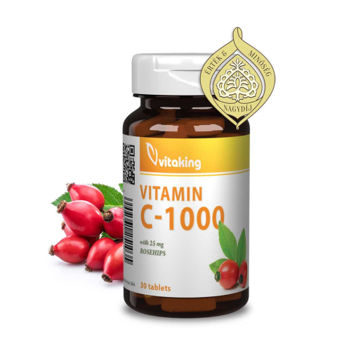 Vitaking C-Vitamin 1000mg 30 db Tabletta csipkebogyóval A C-vitaminnak számtalan feladata van a szervezetünkben és kortól, nemtől és évszaktól függetlenül mindig szükség van rá, ráadásul vízben oldódó vitamin, ezért fontos a rendszeres pótlása. Válaszd a