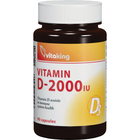2000NE hatóanyag-tartalmú D3-vitamin kapszulában. A D-vitamin (D3-vitamin) zsírban oldódik, amely napsütéssel vagy megfelelő étkezéssel kerül a szervezetünkbe. A napfényvitaminnak is nevezett D-vitamin fontos szerepet játszik a csontok egészségében, a megfelelő izomműködésben és hozzájárul az immunrendszer normál működéséhez.