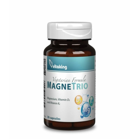 Magnézium + D-3 vitamin + K2 vitamin komplex A MagneTrio a Vitaking igazi prémium terméke. A MagneTrio egyetlen kapszulában kiváló minőségben és nagy mennyiségben tartalmaz 3 létfontosságú hatóanyagot, amelyek hozzájárul a normál izomműködéshez és részt vesz a normál csontozat fenntartásában. A MagneTrio a magnéziumot (100 mg) citrát formában tartalmazza! Magnézium citrát Hozzájárul a normál fogazat fenntartásához. Részt vesz a normál cs