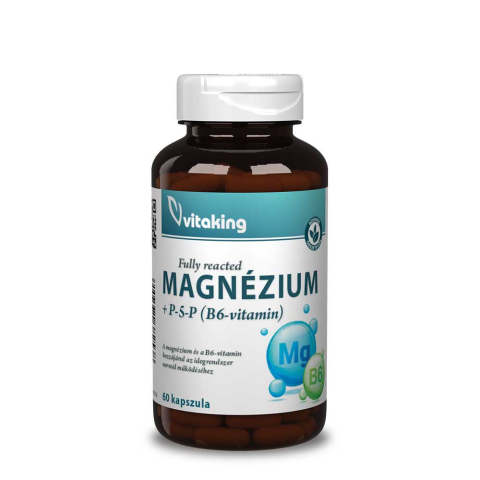 A Vitaking Szerves Magnézium + P5P kapszula egy kiváló összeállítás! Magnézium-biszglicinátot és a B6-vitamin aktív formáját, a piridoxál-5′-foszfátot (P5P) tartlamaz. A magnézium-biszglicinát a magnézium egyik legjobban hasznosuló formája, amely nemcsak