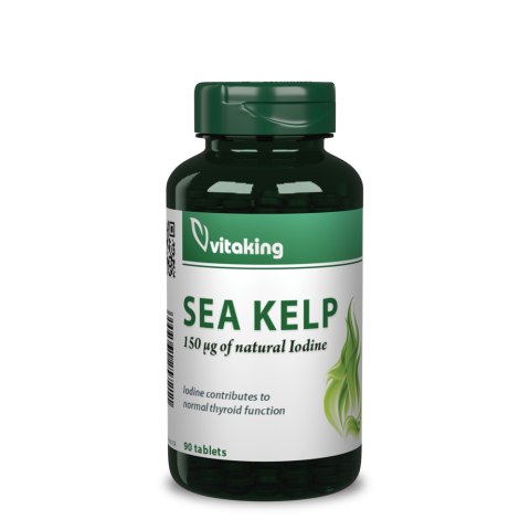 Vitaking Sea Kelp tengeri alga 150mcg tabletta nagy mennyiségű szerves jódot tartalmazó tengeri alga tabletta. A Sea Kelp tabletta a világ egyik legkiegyensúlyozottabb nyomelemforrásának tartott tengeri moszatból készül, hozzájárul a pajzsmirigy egészsége