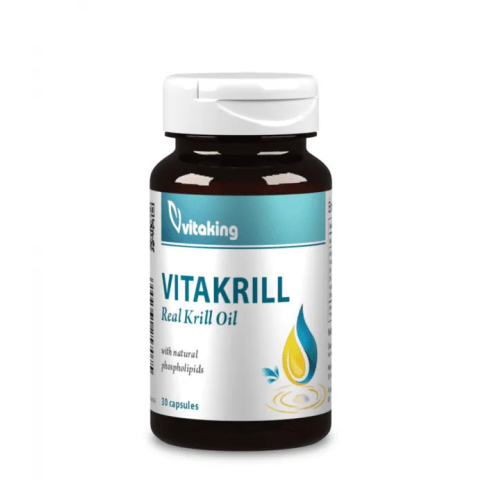 Vitaking Vitakrill Olaj 30db gélkapszula Az omega 3 zsírsavak új generációja a krill olaj. A krillek (világító rákok) hatalmas rajokban fordulnak elő a világ minden óceánjában, de leginkább az Antarktisz nagy tisztaságú vizeiben. Főleg növényi planktono