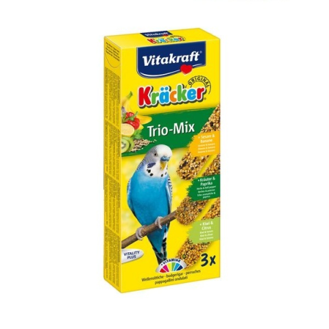 1 kép Vitakraft Kracker Trio Mix - banán, gyógynövény, kivi hullámos papagájnak (3 db)