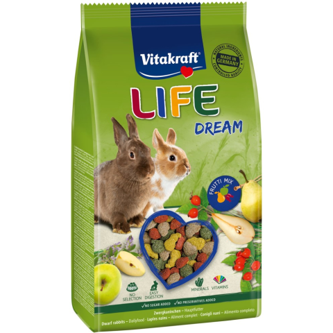 Teljes értékű eledel gyümölcsökkel nyulak részére.Diétához is kiváló, kalóriaszegény termék Magas rosttartalma segíti a megfelelő emésztést és a fogak koptatását. Tökéletes választás válogatós kis kedvencek számára.Összetétel: növényi eredetű származékok, gabonafélék, zöldségek,