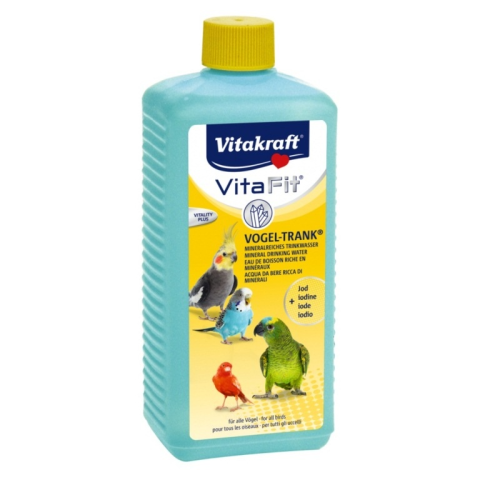 Jóddal, természetes ásványokkal és nyomelemekkel, segíti az anyagcserét. Alkalmazás:A madaraknak minden nap friss ivóvízre van szükségük, ezért a Vogel-Trank lehetőleg naponta frissen adandó. Összetétel: Víz, ásványi anyagok.Adalékanyagok: Színezéket tartalmaz.