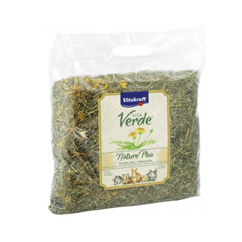 VitaVerde® széna tisztán természetes termék, gondosan betakarítva és szárítva, hogy a természetes vitaminok nagyrészt megmaradjanak. Ízletes pitypanggal gazdagítva, amely a vese működését serkentő hatásáról és a közérzet elősegítéséről ismert. A magas