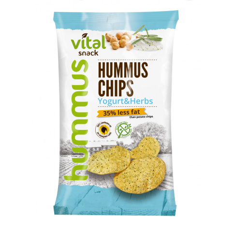 Vital humusz chipsz joghurtos zöldfűszeres 65 g Vital Humusz chips joghurtos-zöldfűszeres ízesítéssel. Összetevők: Bio csicseriborsó liszt (34%), Bio burgonya keményítő, Napraforgóolaj (24%), Bio burgonyaliszt, Élelmiszer-só (2,4%), Dextróz, Tejpor, F