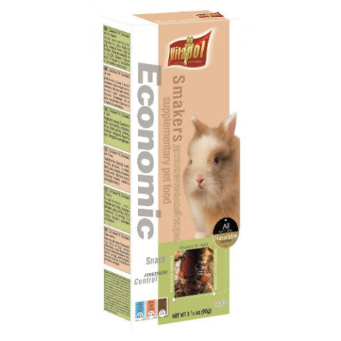 A Vitapol Economic Smakers duplarúd kifejezetten nyulak számára lett tervezve. Ez a csemege rúd gazdag, természetes összetevőkben, mint például zöldségek és gabonafélék, melyek segítenek fenntartani nyuszi egészségét. Segít a fogak természetes kopásában.
