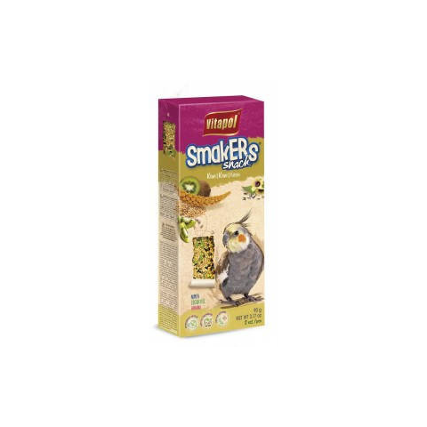 A Vitapol Smakers Rúd (kiwi) 90 g egy prémium kategóriás kiegészítő eledel nimfa papagájoknak, amely gazdag kiwi-ízesítésű, magvakból és gyümölcsdarabokból álló keveréket tartalmaz. Összetevői között szerepelnek sárga köles, piros cirok, fehér köles, héja