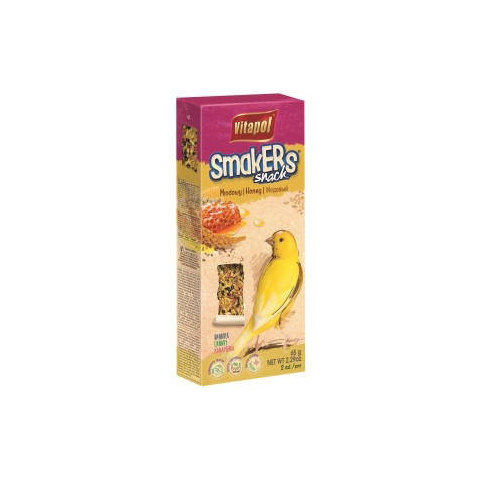 A Vitapol Smakers Dupla Rúd Méz (2 db) 65 g prémium kategóriás kiegészítő eledel kanárik részére, válogatott magvakból és természetes mézes ízesítéssel. Ideális jutalomfalat vagy etetéskiegészítés az alapeleség mellett. Ez a prémium minőségű kiegészítő