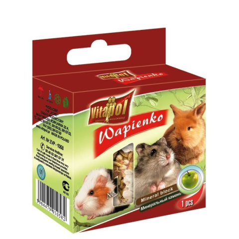 Fogkoptató rágcsálóknak, alma ízesítésben. A rágcsálók metszőfoga folyamatosan nő, koptatására a széna mellett ajánlott fogkoptatót is használni. Ásványi anyagokat tartalmaz 98%-ban.