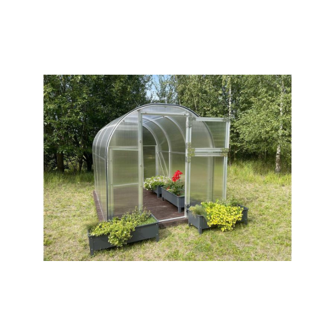 Gyártó - VITAVIA GARDENAz üvegház konstrukciója erős alumíniumprofilokból (masszív 1 mm vastag és 65 mm széles eloxált alumíniumprofilból) van összecsavarozva, és a brit BRETT MARTIN cég UV-szűrős prémium cellás polikarbonátjával egészül ki, 10 év kiterjesztett szerződéses garanciával. a polikarbonát jégeső miatti törhetetlensége. Ezzel a kombinációval a VITAVIA BOHEMY sorozat üvegházai az egyik legjobb minőségű és egyben a legkönnyebben összeszerel