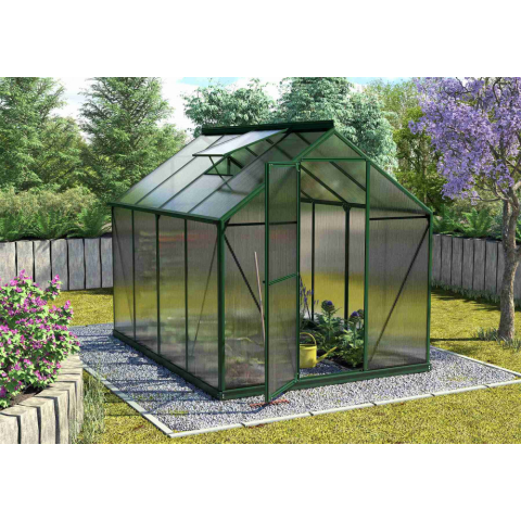 üvegház VITAVIA TRITON 5000 PC 6 mm zöld színű LG3671Alumínium üvegház, sz 198 x h 256 cm, zöld, 1 x tetőszellőző ablak, polikarbonát 6 mm, csuklós ajtó, terület 5,07 m2. Gyártó - VITAVIA GARDEN - Egyesült Királyság A TRITON sorozatú üvegházak a PREMI