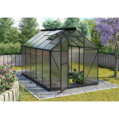 üvegház VITAVIA TRITON 6200 PC 6 mm fekete színű LG3682Alumínium üvegház, sz 198 x h 317 cm, fekete, 2x tetőszellőző ablak, polikarbonát 6 mm, csuklós ajtó, 6,27 m2. Gyártó - VITAVIA GARDEN - Egyesült Királyság A TRITON sorozatú üvegházak a PREMIUM ka