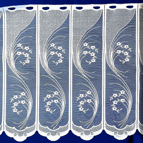 Vitrage BOGI, fehér jacquard csipke vitrázsfüggöny anyag - 60 cm magas lakástextília termékleírás