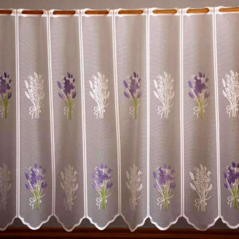 Vitrage Fehér jacquard vitrázs függöny, levendula mintával - 90 cm magas lakástextília termékleírás