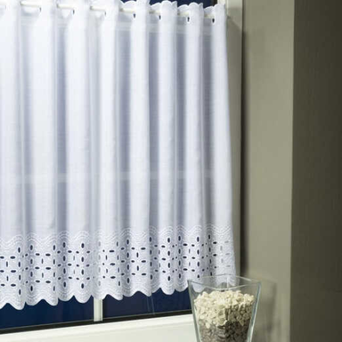 Teljes Vitrage MAROS fehér hímzett batiszt vitrázsfüggöny 45 és 60 cm magas termékleírás