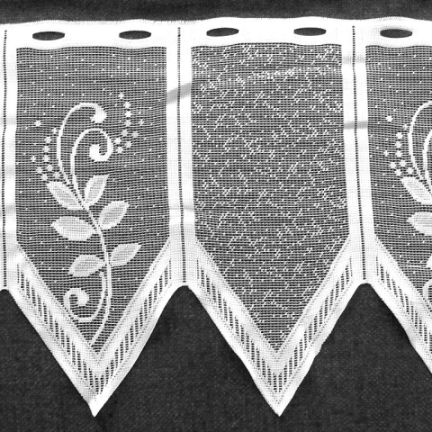 1 kép Vitrage Vitrázs függöny, cakkos-indás fehér, 30 cm magas